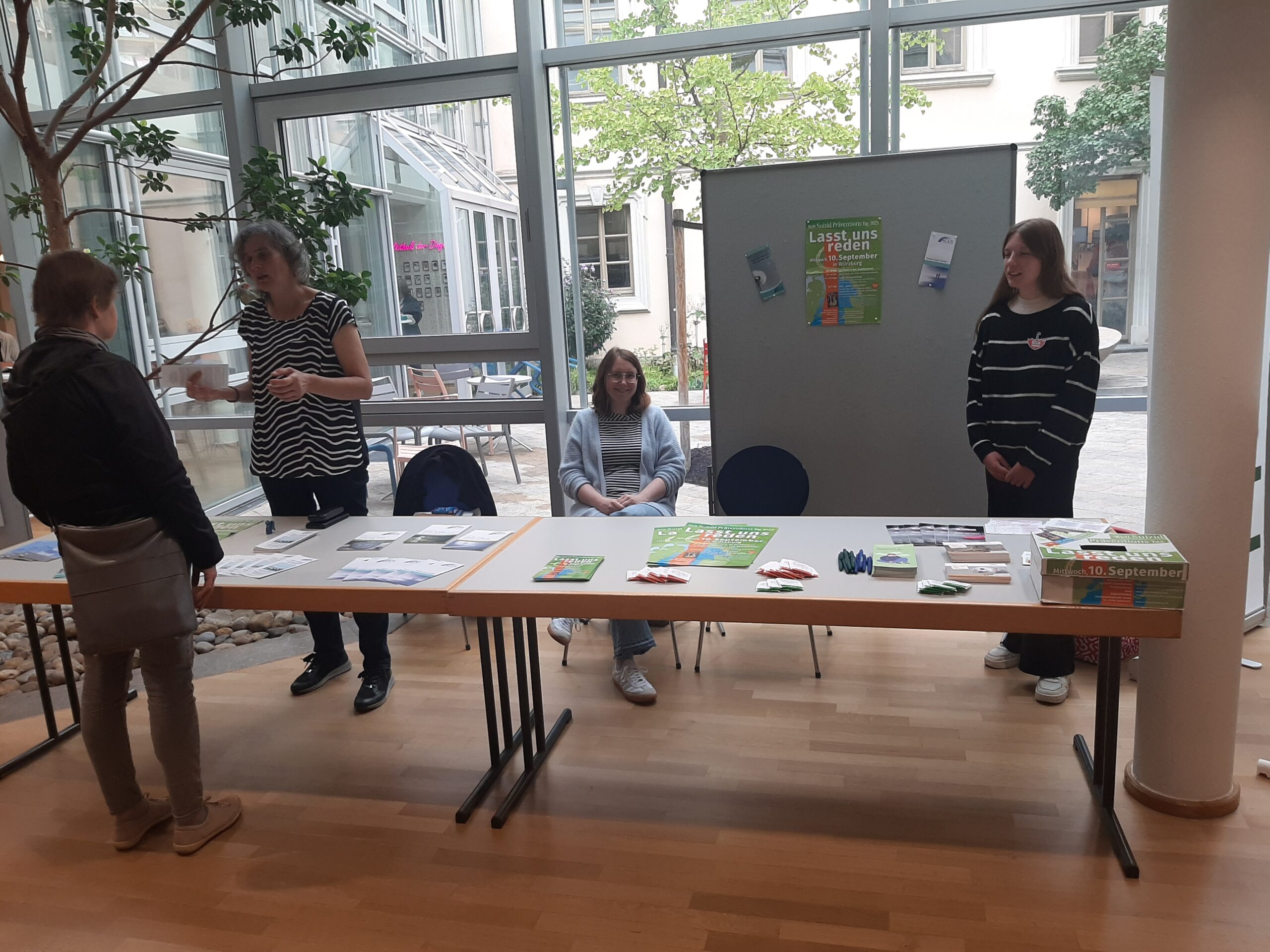 Tagsüber laden Infostände in der Stadtbücherei und vor dem Gesprächsladen zum Gespräch und zur Information ein. Anschließend gibt es in der Augustinerkirche ein „Zwischenraumritual“.
